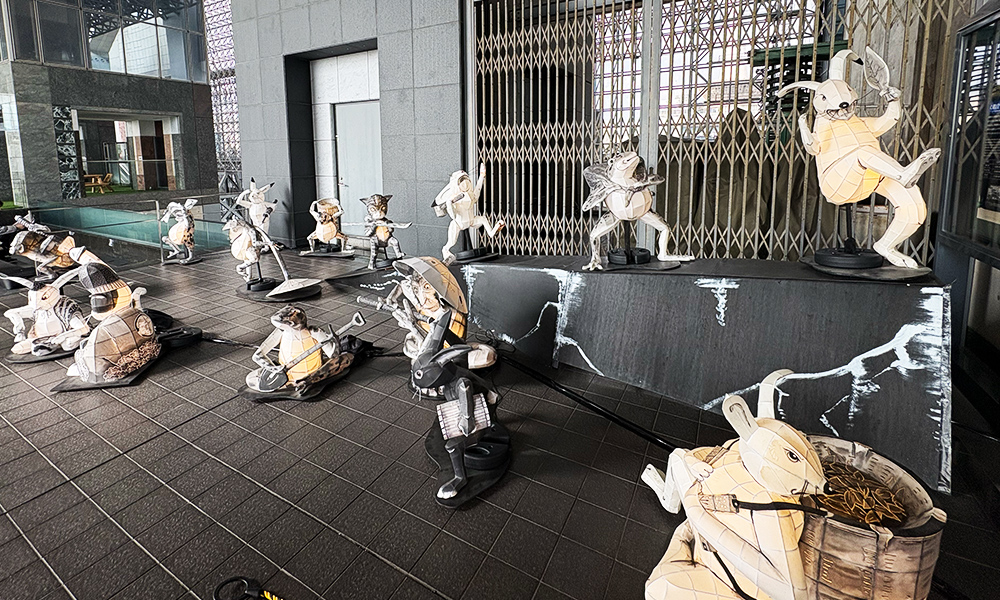 佐賀「和多屋別荘」からは、ランタン作家・三上真輝さんによる『鳥獣戯画〜お宮参り図〜』の一部が京都初公開。京都に“帰京”した鳥獣戯画が、新幹線映像とも連動して登場します。