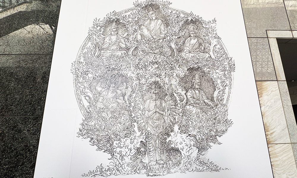 鎌倉からは、大佛師・奥西希生さんによる巨大彫刻プロジェクト「立体六道輪廻図」の下絵図を展示。京都と鎌倉、二つの古都の精神性が共鳴しています。