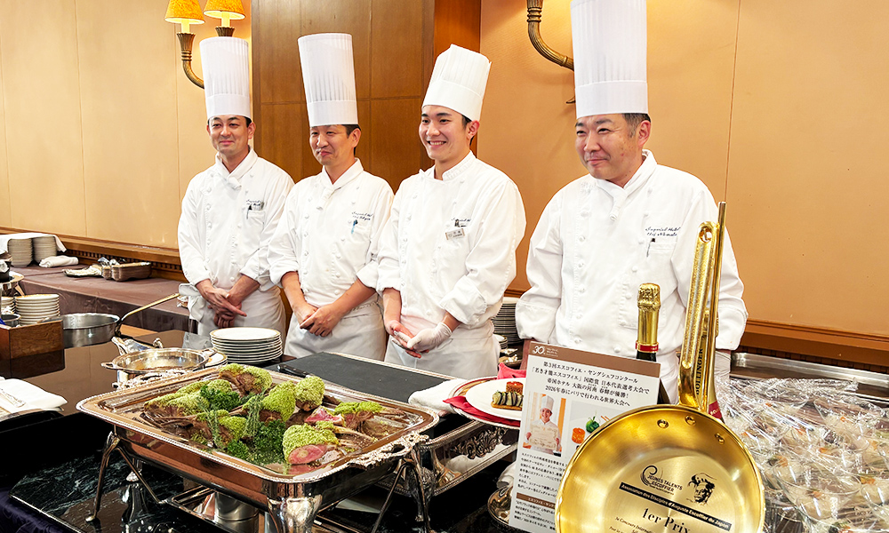 さらに、若手スタッフが挑戦した国内外の料理コンクール作品も展示されていました。