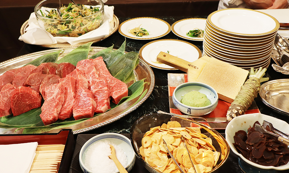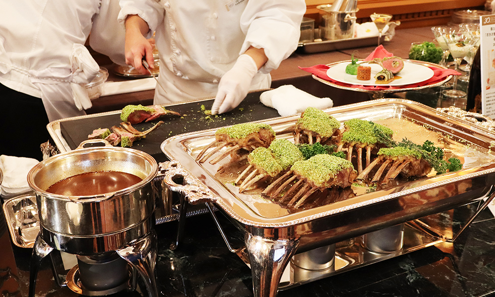 オールデイダイニング「カフェ クベール」のビーフカレー、鉄板焼「嘉門」の松阪牛フィレ、フランス料理「レ セゾン」のオードブルなど、帝国ホテル 大阪を象徴する料理が一堂に並びました。
