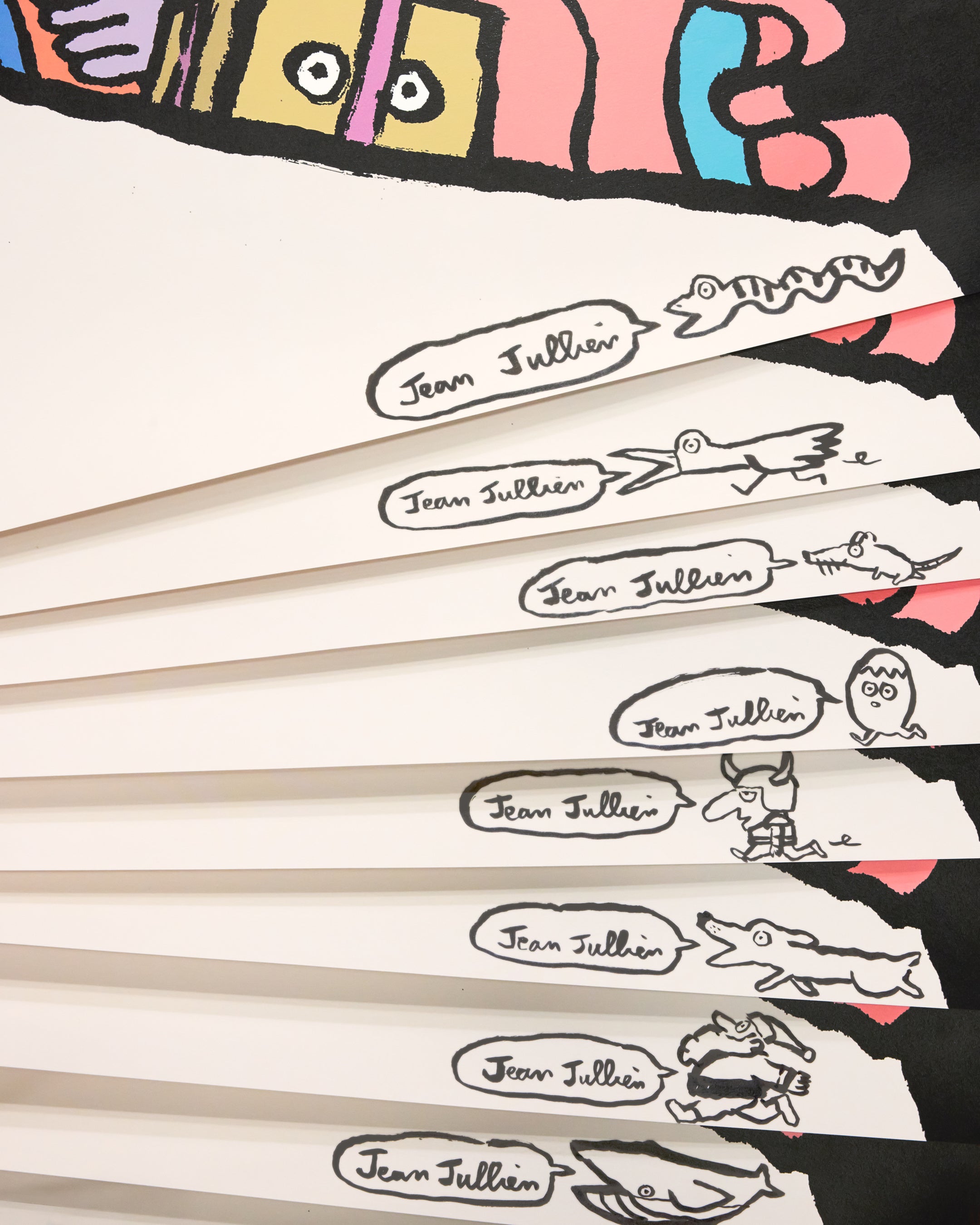 中心となるキャラクターは食いしん坊のカエル《ポール》。日本ではカエルが縁起物として親しまれていることを知ったジャン・ジュリアンが豊かさと遊び心の象徴として描き出しました。カエルの口からあふれ出すキャラクターたちは、日本のマンガやアニメ、玩具文化から着想を得たもので、日本的な想像力へのオマージュにもなっています。