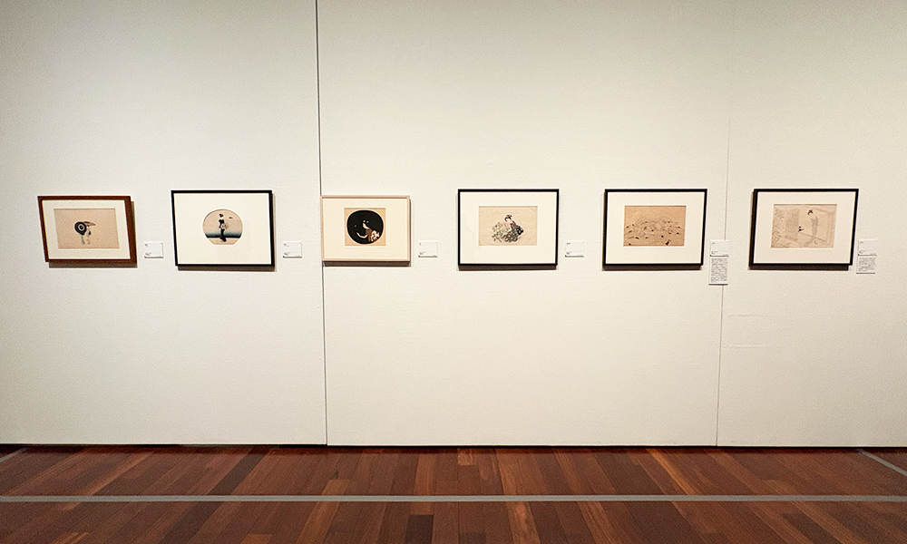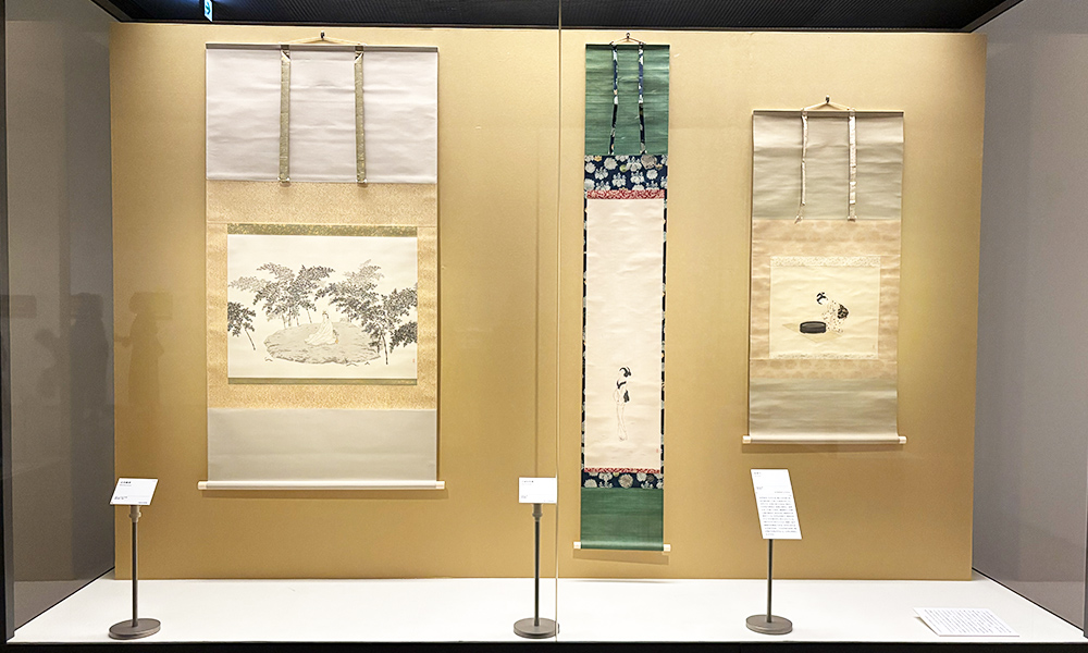 本展では、初期から晩年までの肉筆作品を一堂に展示し、装幀や挿絵の陰に隠れがちだった日本画家としての魅力に光を当てています。前期展示の《草枕絵巻》、後期展示の《十二ケ月連幅》は、ぜひ注目したい作品です。