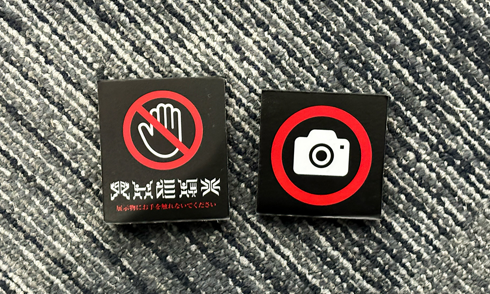 【展示物にお手を触れないでください】のキャプションは古代文字も記載されており、ファンの心を鷲掴みにします。