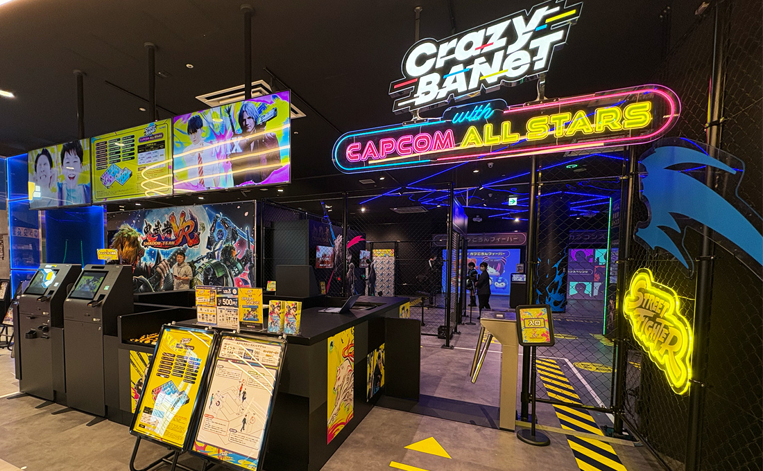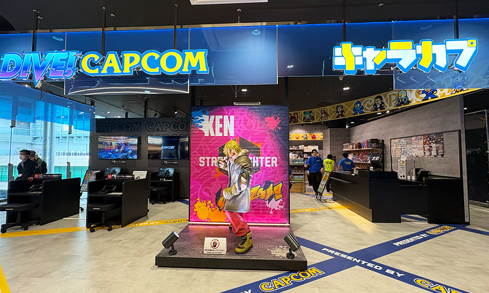 施設内には、最新ゲームタイトルを試遊できる「DIVE! CAPCOM」や、キャラクターグッズ専門店「キャラカプ」も併設されています。