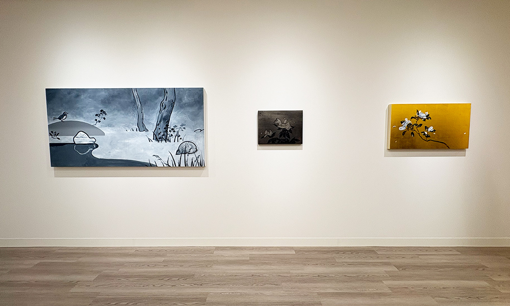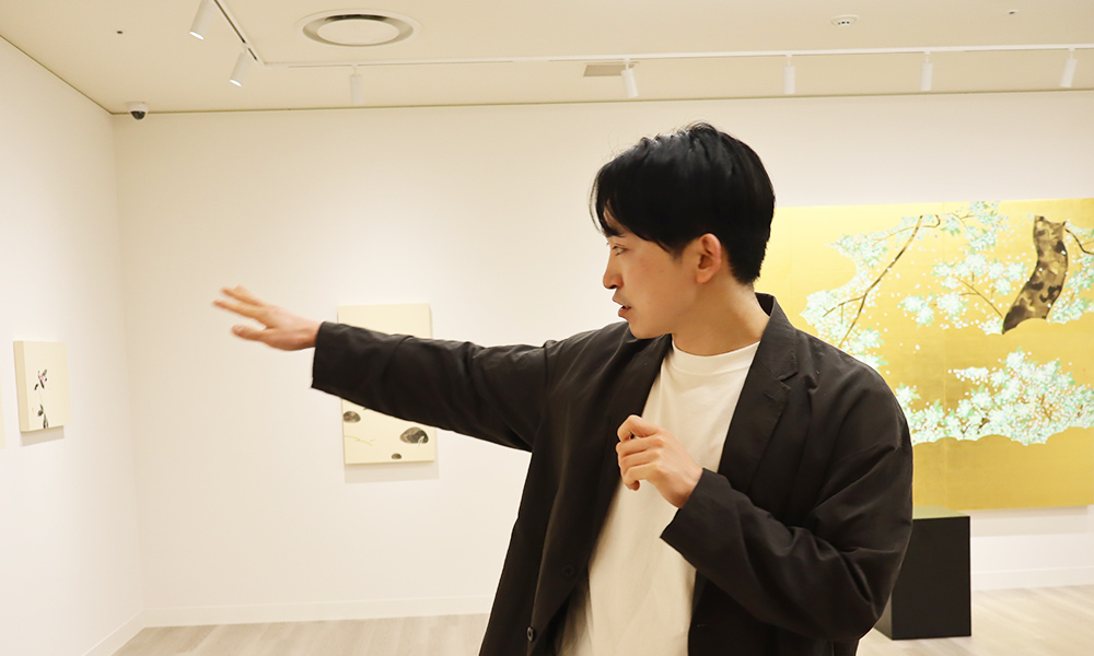 また、描かれている部分と描かれていない余白を対等に扱うことで、日本絵画特有の“余白”の美を現代的に再解釈。観る者の想像力を喚起し、平面でありながら奥行きを感じさせる表現へと昇華しています。