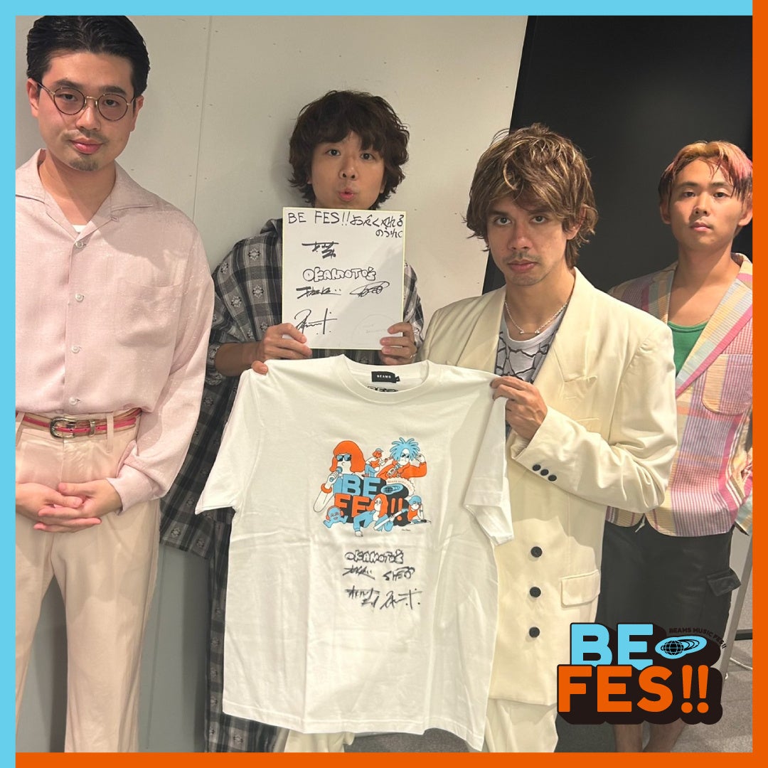 『BE FES!!』福岡公演の開催を記念して、X(旧:Twitter)にて本イベントについて指定ハッシュタグ付きで投稿いただいたお客様へOKAMOTO’S、Chilli Beans.、STUTSそれぞれの直筆サインが書かれた『BE FES!!』 Tシャツ各1枚を抽選でプレゼントするキャンペーンを行います。