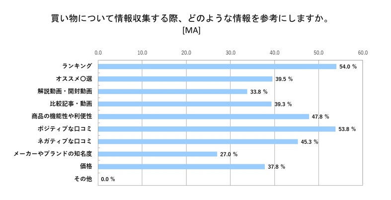 ■情報収集で参考にすることはランキングや比較。口コミ以外にも、比較動画や解説・開封動画を。