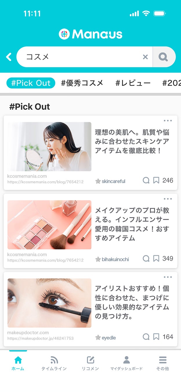 Mana-usアプリはショッピング情報に特化した、直感的で“見やすい”“使いやすい”UIに注力しました。ネット検索や動画サイトなどで「これいいな!」と思った情報はMana-usでリコメンして保存&シェアしましょう。同じような商品の情報を探している人の助けになります。気になったものはとりあえずどんどんキープ!キープリストを見返して、ゆっくり検討しましょう。
