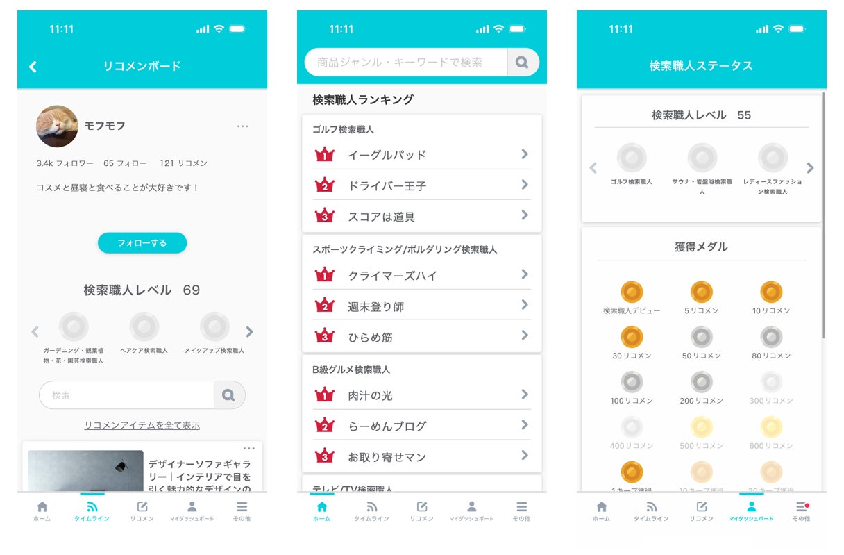 情報をリコメンをする人のことを、Mana-usでは検索職人と呼んでいます。リコメンした情報を多くの人が参考にすると、検索職人ランクが上がっていきます。主要な商品カテゴリごとに検索職人ランキングがあります。探している商品の検索職人ランキングが高い人=”その道のマニア”がおすすめしている情報を参考にするのもいいかもしれません。