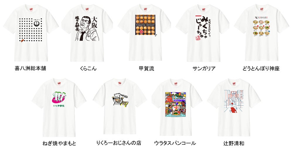 「UNIQLO SHINSAIBASHI」のオープンを記念して、大阪を代表する企業とコラボレーションした商品を、同店限定で販売します。大阪十三に本店を構える昭和23年創業の老舗和菓子屋「喜八洲総本舗」、塩こん部長のイラストでおなじみの「こんぶのくらこん」、大阪アメリカ村で誕生したこだわりのたこ焼き「甲賀流」、喫茶店のミックスジュース味を再現した『みっくちゅじゅーちゅ』でおなじみの「サンガリア」、秘伝のスープと白菜の旨味とのハーモニーが絶妙な『おいしいラーメン』が看板商品の「どうとんぼり神座」、昭和40年創業のねぎ焼発祥の店「ねぎ焼やまもと」、行列が出来る『焼きたてチーズケーキ』の焼印でお馴染みの「りくろーおじさんの店」の、計7社とのオリジナル商品、およびオリジナルのTシャツやトートバッグを作ることができるサービス「UTme!」のスタンプを展開します。また、大阪を中心に活躍するアーティスト「ウラタスパンコール」と「辻野清和」による大阪の観光スポットを描いたイラスト商品を、同店と「ユニクロ心斎橋筋商店街店」限定でご用意します。