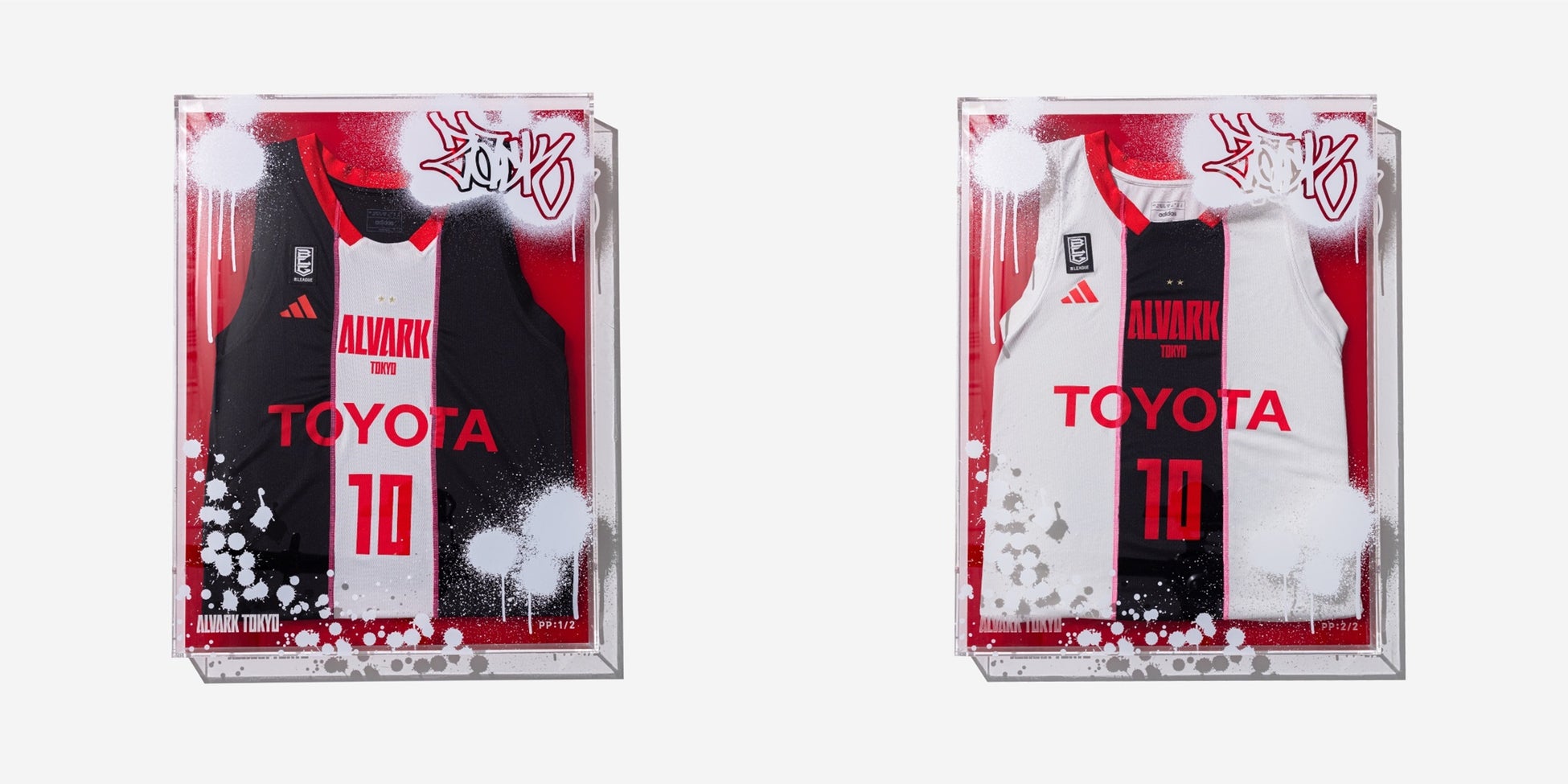 2023-24シーズン中に選手が着用したホームとアウェイのユニフォームを組み替えて額装した東京のストリートカルチャーを彷彿させるアートピースで、日本のバスケットボールカルチャーにおける新たな価値を創造